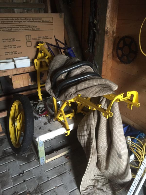 Hallo, anbei ein paar Fotos von meinem Scheunenfund. Dies Motorrad ( Katana 750 ) habe ich 1993 an einen Bekannten verkauft, uns zwar im Originalzustand. Der Käufer hatte zum Kauf ein Foto meiner HB KAtana von 1983 mitbekommen und war so angetan, dass er sein neu erworbenes Motorrad bis auf die letzte Schraube demontierte, die zu lackierenden Teile zum Lacker gab (und genau zu dem,der 10 Jahre zuvor meine erste Katana lackierte) holte die Teile frisch lackiert ab, legte eine Decke über alle Teile und ging nie wieder an das Objekt. Vor kurzer Zeit fragte ich ihn nach dem Motorrad und er zeigte mir die Teile. Ruckzuck habe ich die Teile zurückgekauft und werde versuchen nun ein Motorrad daraus zu bauen. So kann´s gehen.