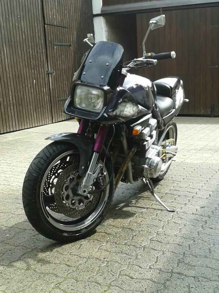 Heck: Monofederbeinumbau (ausgführt vor ca. 10 Jahren von Werner Katana Nürnberg) aktuell mit K&J und 5,5 Zoll GSXR felge mit 180er.