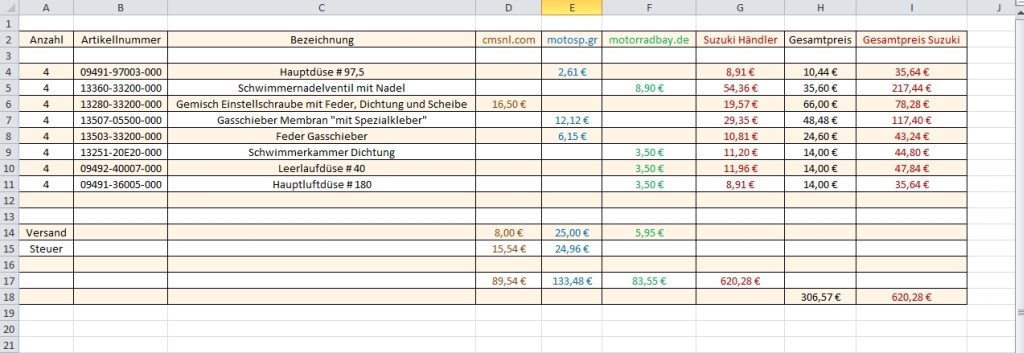 Hier mal ein vergleich meiner Bestellung zum Freundlichen.