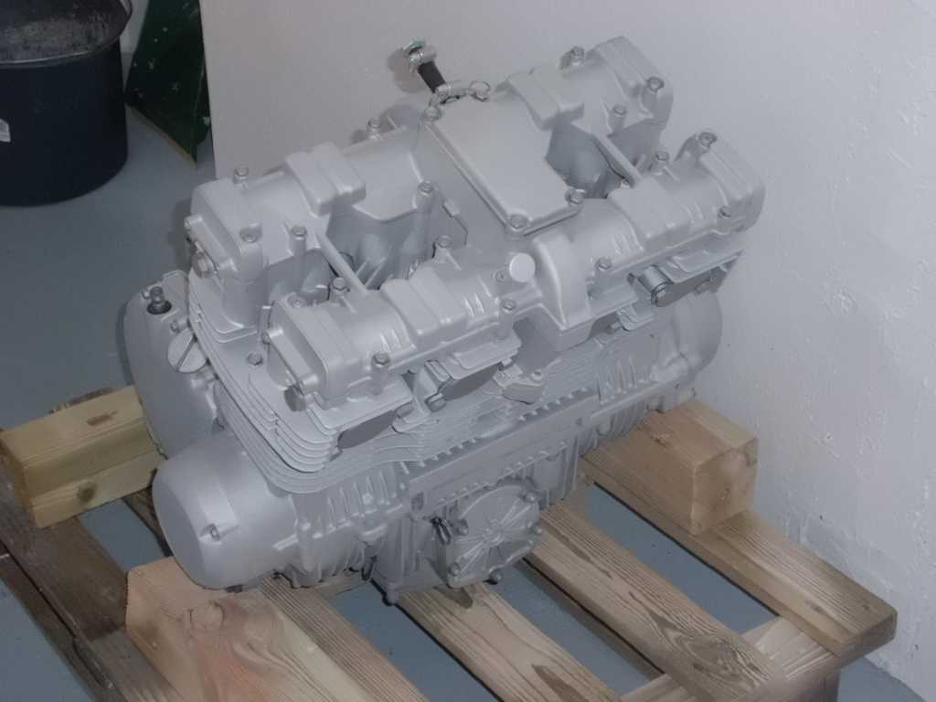 Der Motor soll nicht lackiert werden, er bekommt nur einen leichten Ölnebel. Die Schrauben werden alle noch gegen VA getauscht.