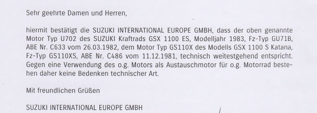 Seit wann hat die Bandit 38 Vergaser? Unabhängig davon ist fraglich, ob 38 Vergaser bei der Katana viel Sinn machen, ohne die Einlässe am Kopf zu erweitern.