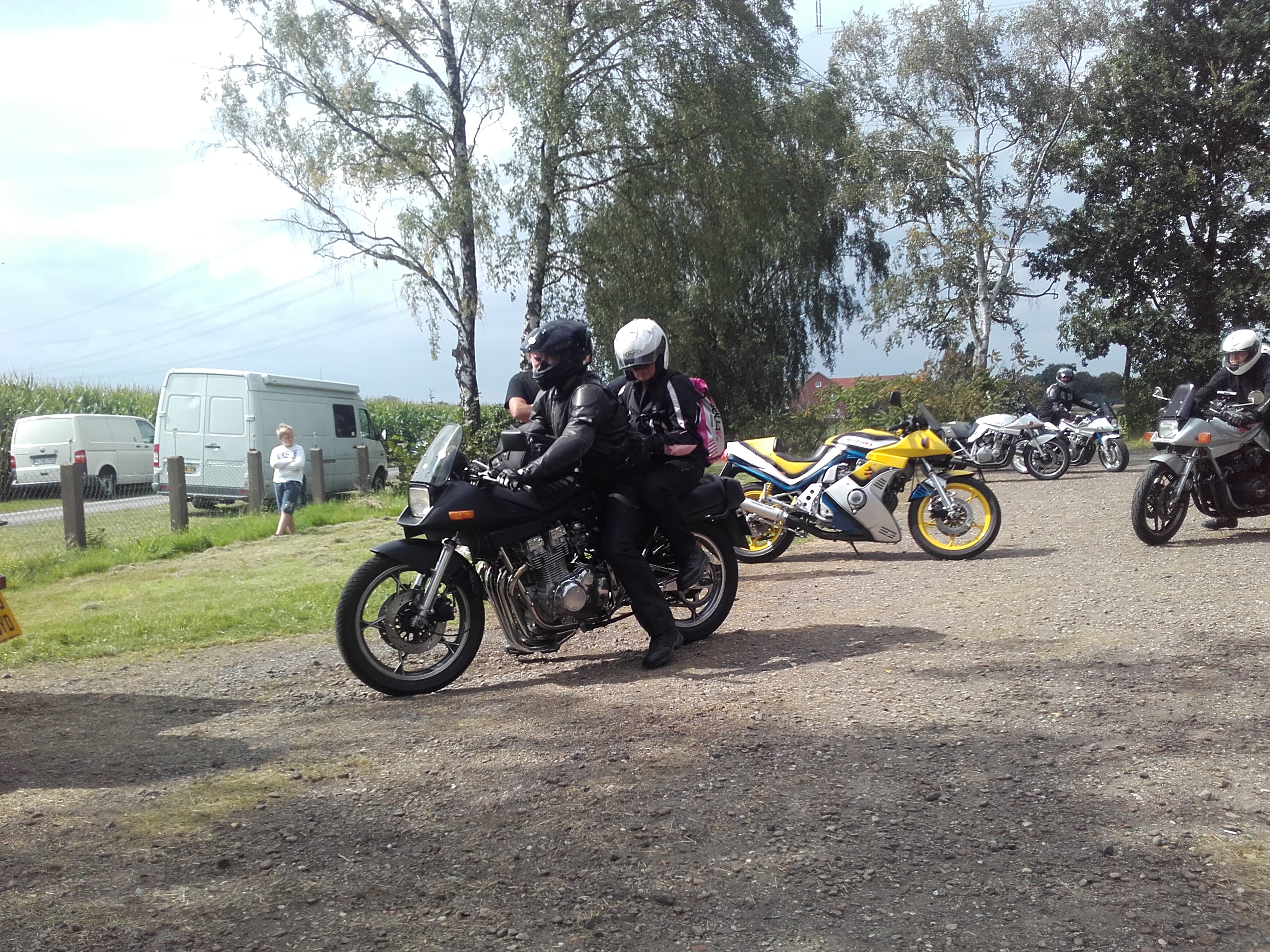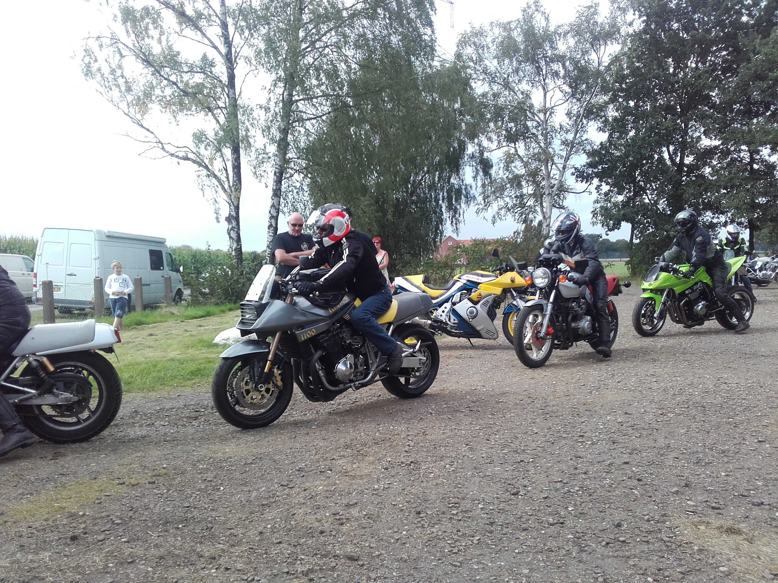verdammt, hat wieder nich geklappt mit dem komplett trockenen Katanatreffenwochenende seit 2012, kurz nach dem abrollen vom Platz ein Regenschauer und 15Km nasse Straße.