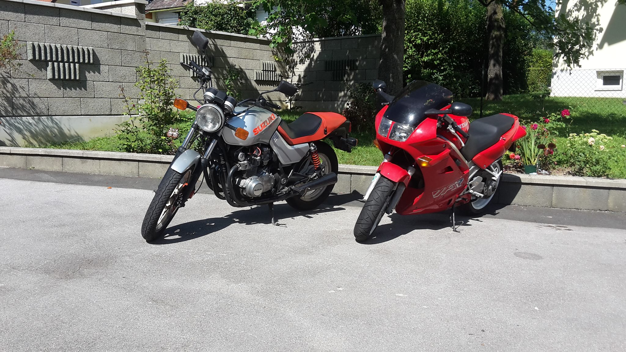 - '82 Suzuki GS650G Katana (mein Alltagsklassiker, bin schon oft angesprochen worden mit ihr. Einmal kam bei einer Tankstelle ein älterer Herr von seinem alten Benz (irgendwas aus den 50iger weiß ned mehr genau was) zu mir und meint "Das is die tolle Suzuki mit den 2 Nockenwellen!!". Richtig coole Momente)