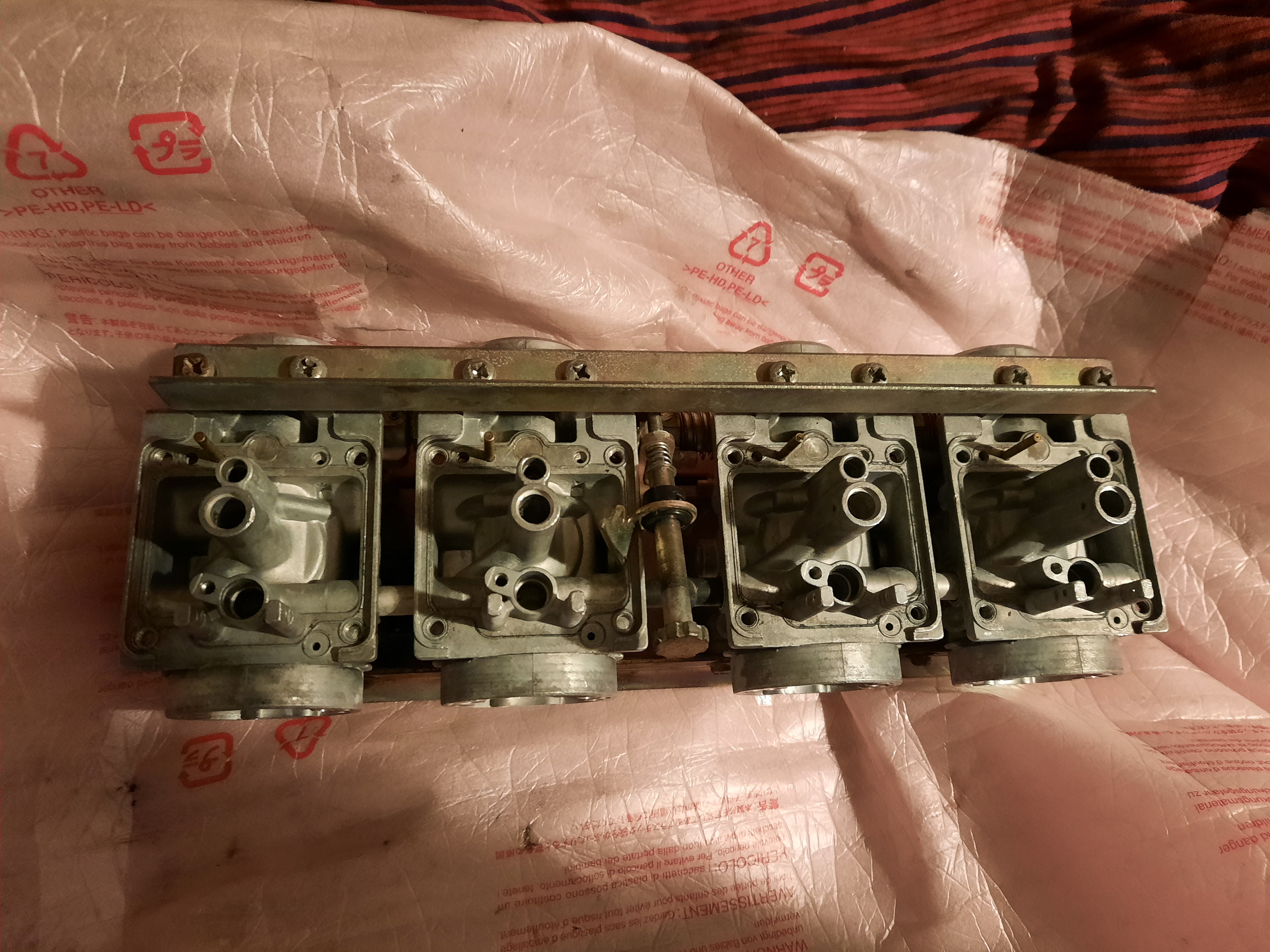 habe die Vergaser komplett überholt: und die Bremsanlage: diese Woche werden noch die Reifen montiert, und dann steht Sie endlich wieder auf eigenen "Füßen"!