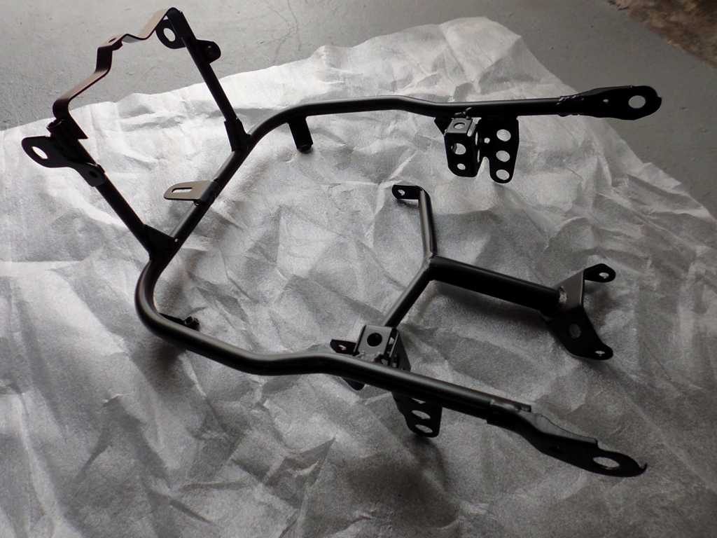 bei dem wir vorbeigefahren sind kann nicht selber strahlen. Der hat den Rahmen gemacht und vorher fremd chemisch entlacken lassen. Sehr saubere Arbeit, hat richtig Tiefe. Zweifach gepulvert und dann Klarlack.