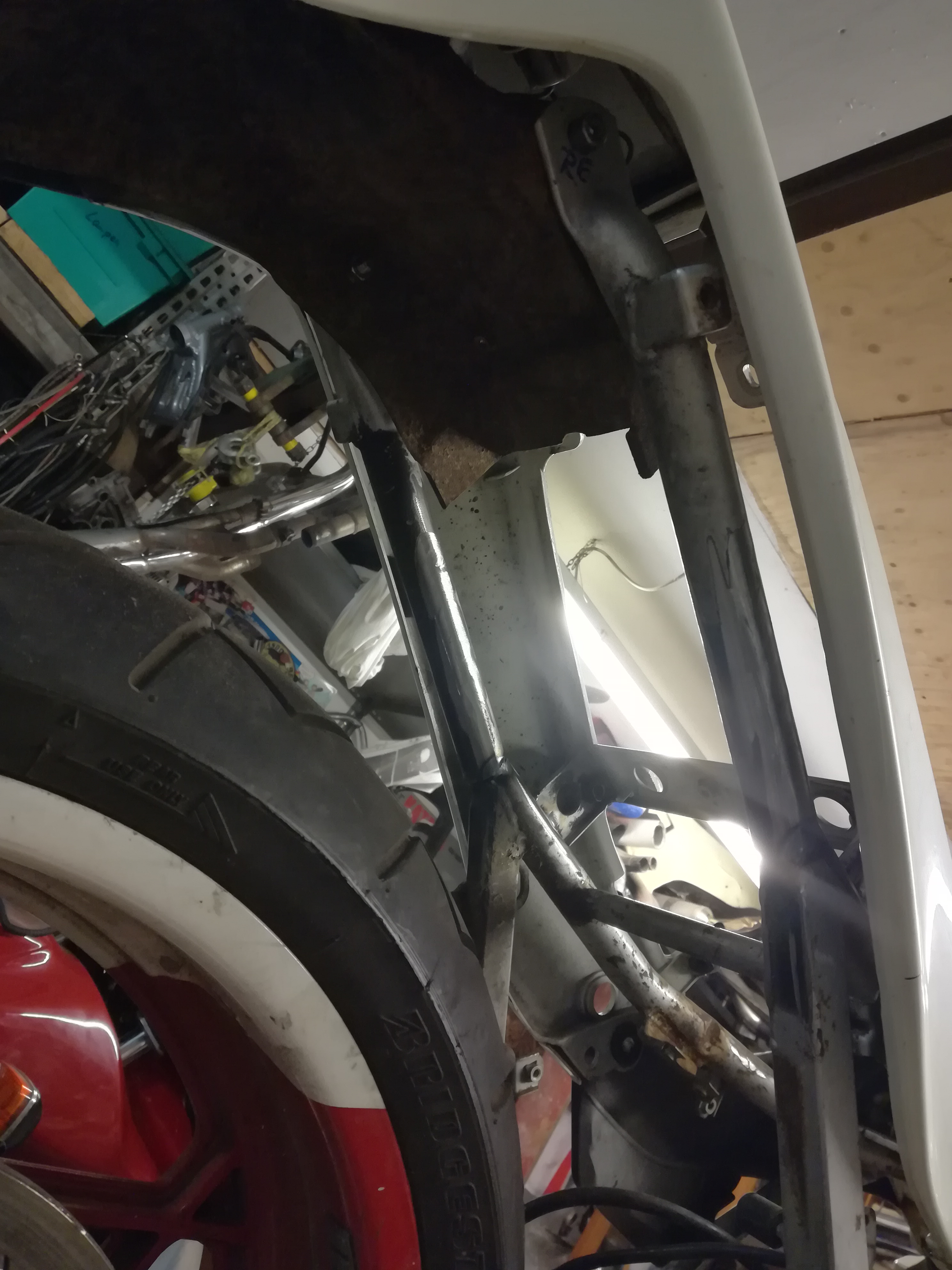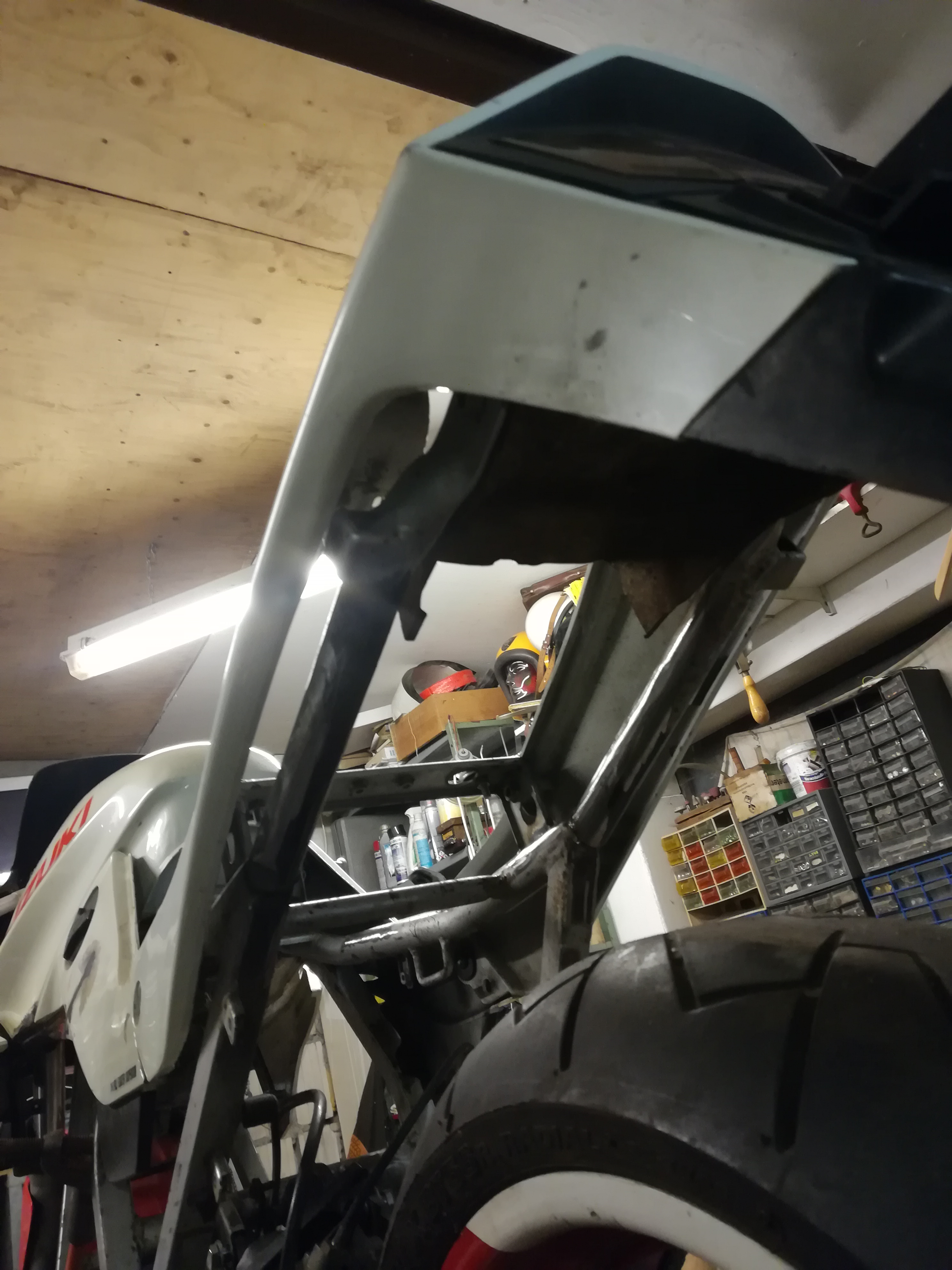 Hab die erste Strebe eingeschweißt, die das Heck hält