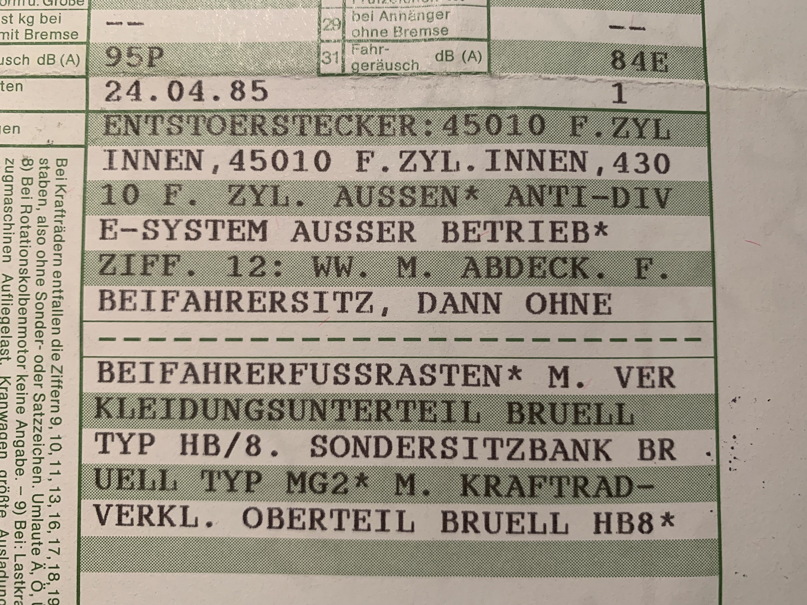 Alle Eintragungen zu Teilen der Fa. Brüll im Brief, sind dann wohl älter und haben mit den derzeit angebauten Teilen nichts zu tun.