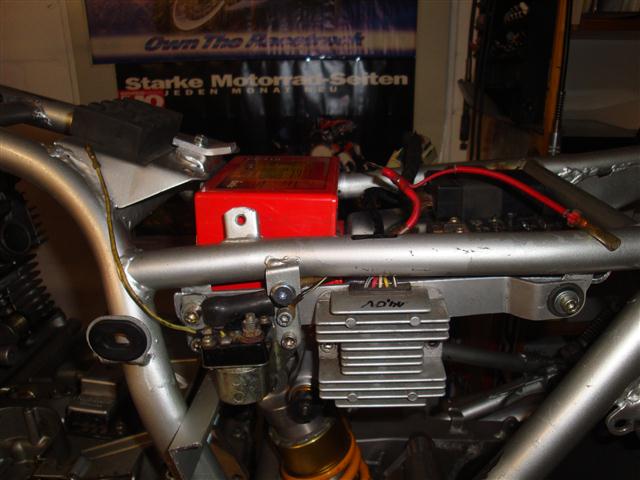 Die 1230er hier wird, anders als ursprünglich gedacht, nicht auf der Strecke benutzt, sondern soll mein neues straßenzugelassenenes Moped werden. Die Grüne wird statt dessen (irgendwann) für die Strecke zurechtgemacht. Kriegt dann aber auch einen EF-Motor. Hab ja schließlich noch den 1170er liegen.