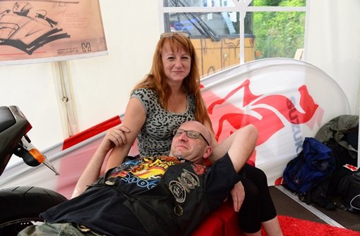Der Suzuki-Stand optimal in der Nähe der Sprintstrecke gelegen. Am Samstag Nachmittag war der persönliche Austausch mit Herrn Muth am "KatanaStand" gegeben. Am Abend gab es einen exklusiven mehrstündigen Vortrag von ihm (im ehemaligen Rennturm der Strecke) über seinen beruflichen Werdegang und der Erklärung, wie es letztlich zu dem Katanaentwurf kam.