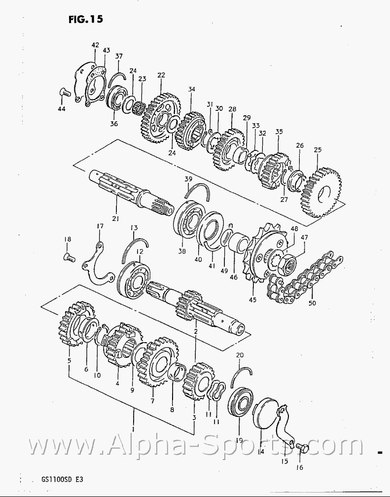 Hast Du die Originale Distanzbuchse zwischen Getriebeausgangslager und Ritzel verbaut? Scheint mir hier zu fehlen. (Nr 46)
