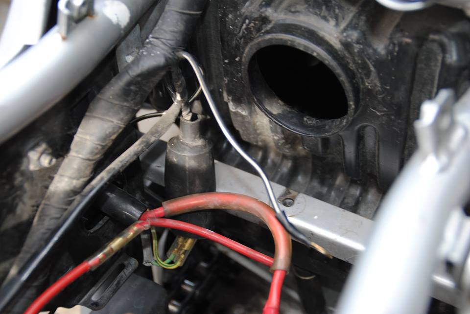 Meine Frage bezieht sich auf ein Kabel mit Kabelschuh (Öse) das aus dem Kabelbaum links heraus kommt. Farbe ist schwarz mit weißem Strich. Ca. 9cm lang. Wo gehört das hin?