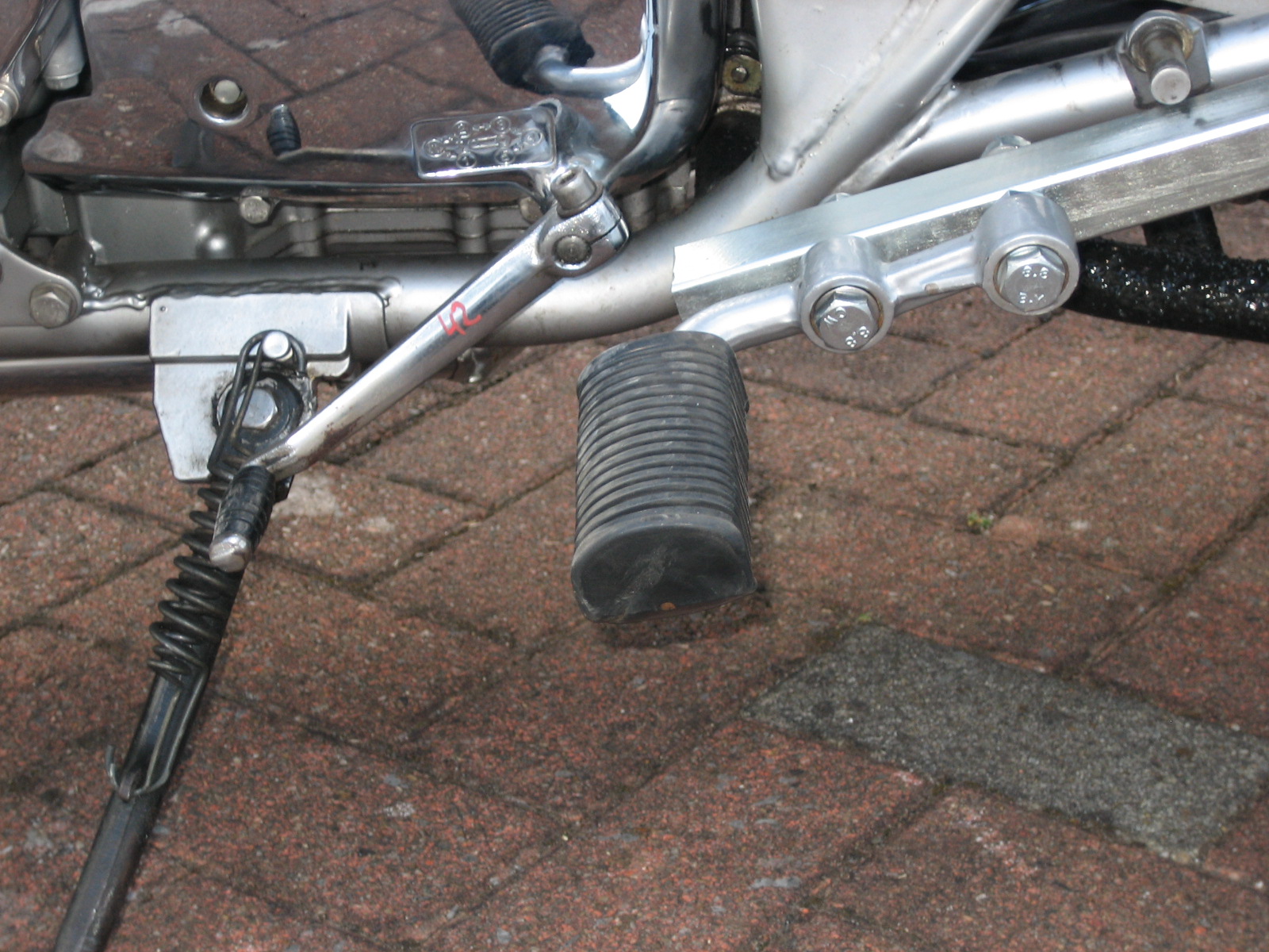 ich habe die Rastenanlage von GR 77 als basis genommen. Sicher ist die Position nicht so weit vorne, aber man könnten die Stahlplatte, die die Rasten aufnimmt verlängern. Die sollte dann aber an der Schwingenachse oder so ähnlich mit befestigt werden, weil das sonst zu instabil wird.