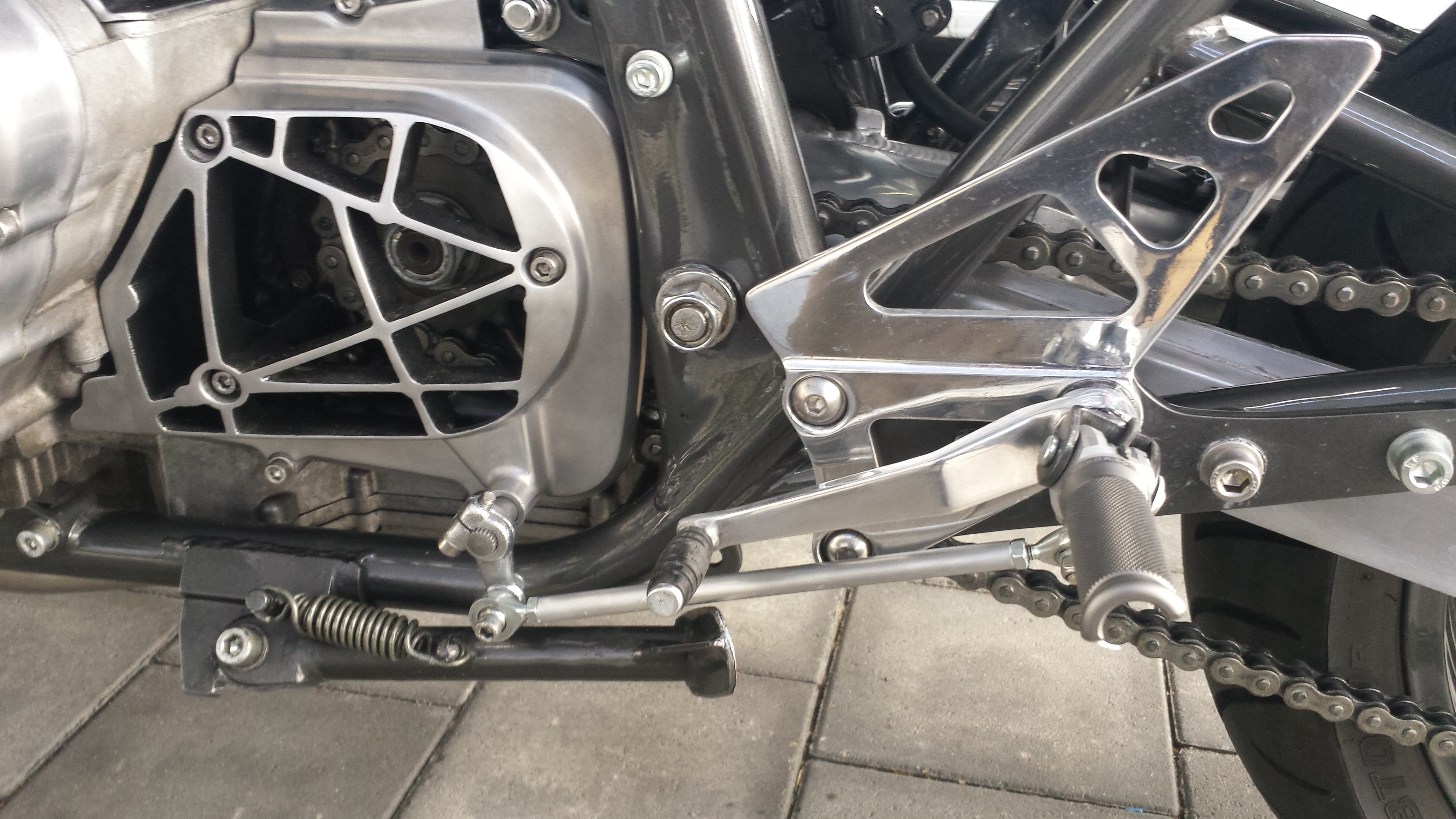 ich habe die Rastenanlage von GR 77 als basis genommen. Sicher ist die Position nicht so weit vorne, aber man könnten die Stahlplatte, die die Rasten aufnimmt verlängern. Die sollte dann aber an der Schwingenachse oder so ähnlich mit befestigt werden, weil das sonst zu instabil wird.