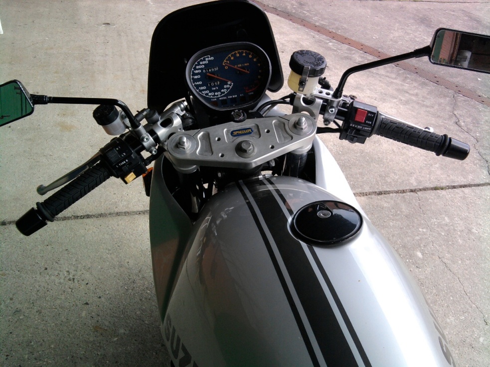 Da mir der Superbike-Lenker überhaupt nicht zugasagt hat,wurde er gegen LSL Stummel getauscht.Neu Reifen waren auch fällig,die alten waren doch schon 10 Jahre alt.
