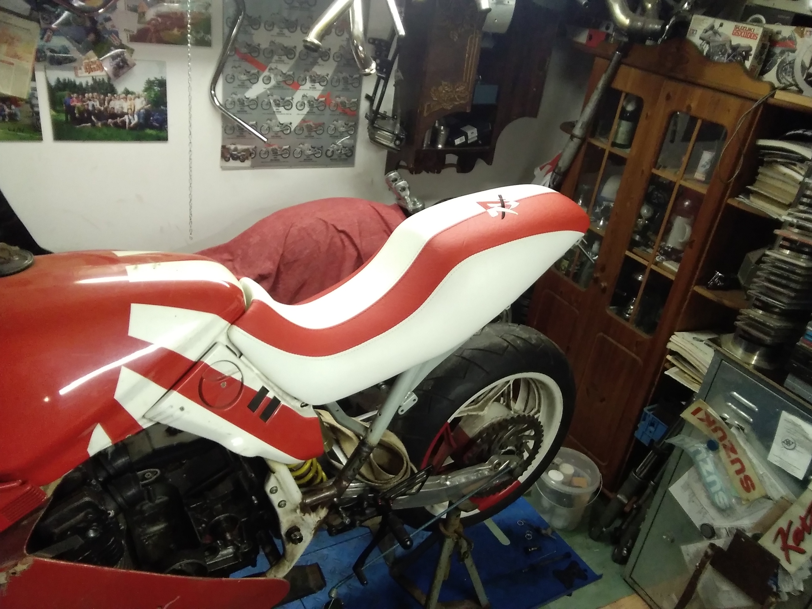 Nee, mit der 750 I. ger werde ich definitiv nicht zum Treffen fahren. Ich werde sie nochmal im original Rot lackieren lassen, dann kommen die weißen Schriftzüge rauf, und dann steht sie zum Verkauf. Deswegen baue ich wieder an meiner ro /we., um mit der zu fahren. Hab schon ein 11Ef Motor gekauft, der soll noch rein, den Auspuff muss wieder zusammen setzen und dann wäre ja noch die Verkleidung