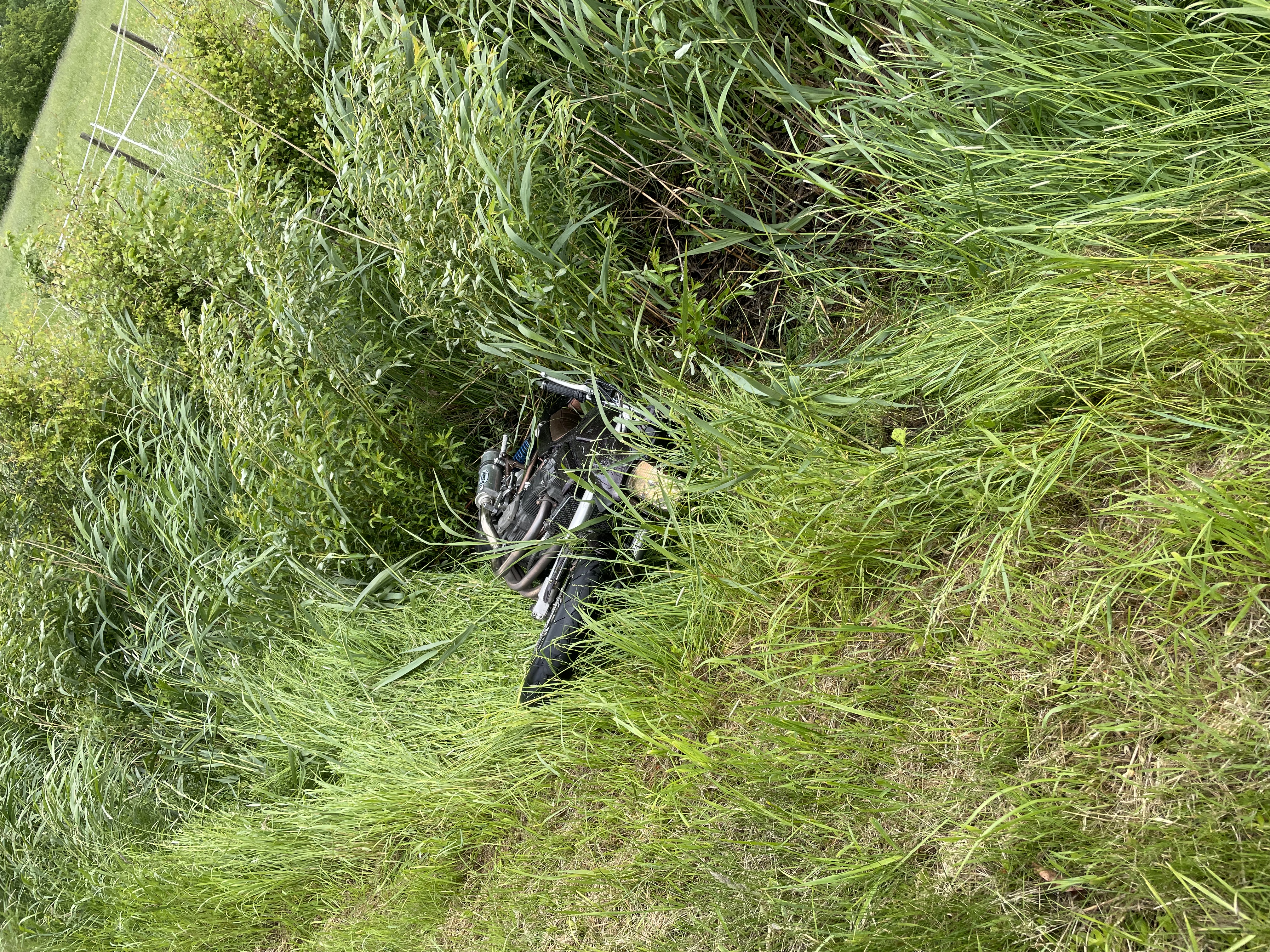 Auf Regennasser Straße ist mir das Hinterrad weggegangen und dann ab in den Graben,…