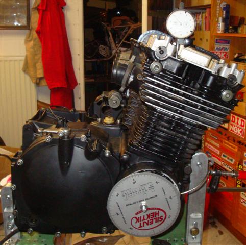 Hatte ich erwähnt, daß ich einstellbare Nockenwellenräder habe? Als der Motor dann soweit zusammen war, mußte ich mich folglich mit der Kunst der exakten Nockenwellen Einstellung befassen. Hab mich im Internet umgeschaut und ne Menge hilfreicher Seiten gefunden und einfach mal gemacht.