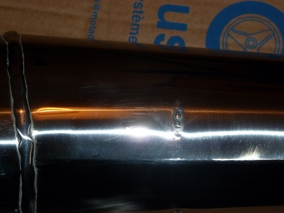 gestern hab ich eine Motad 4in1 geliefert bekommen. Das ist ja eine der extrem wenigen die noch neu zu bekommen sind - mit E Prüfzeichen. Und wie ich das Teil auspacke, fällt mir auf dass am Endtopf deutlich sichtbare Schweisspunkte an x Stellen zu sehen sind. Ich deute das mal so dass an diesen Stellen innen Prallbleche angepunktet werden, und, da die Sammler und Endtöpfe nicht doppelwanding sind, die Punkte die Oberfläche eben mit kleinen ( soo klein allerdings auch nicht, 2-3 mm allemal) Bergen und Tälern verschönern. Der Chrom geht drüeber, die sind also so in diesem Zustand durch das Bad gelaufen. Mal ganz ab vom kosmetischen frage ich mich