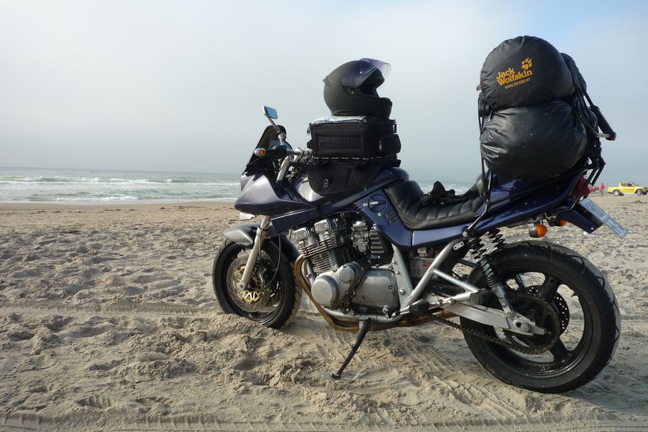 Erste Nacht nach 700 km in Tornby, kurz vor Hirtshals. Hier kann man noch schön mit dem Mopped an den Strand fahren.