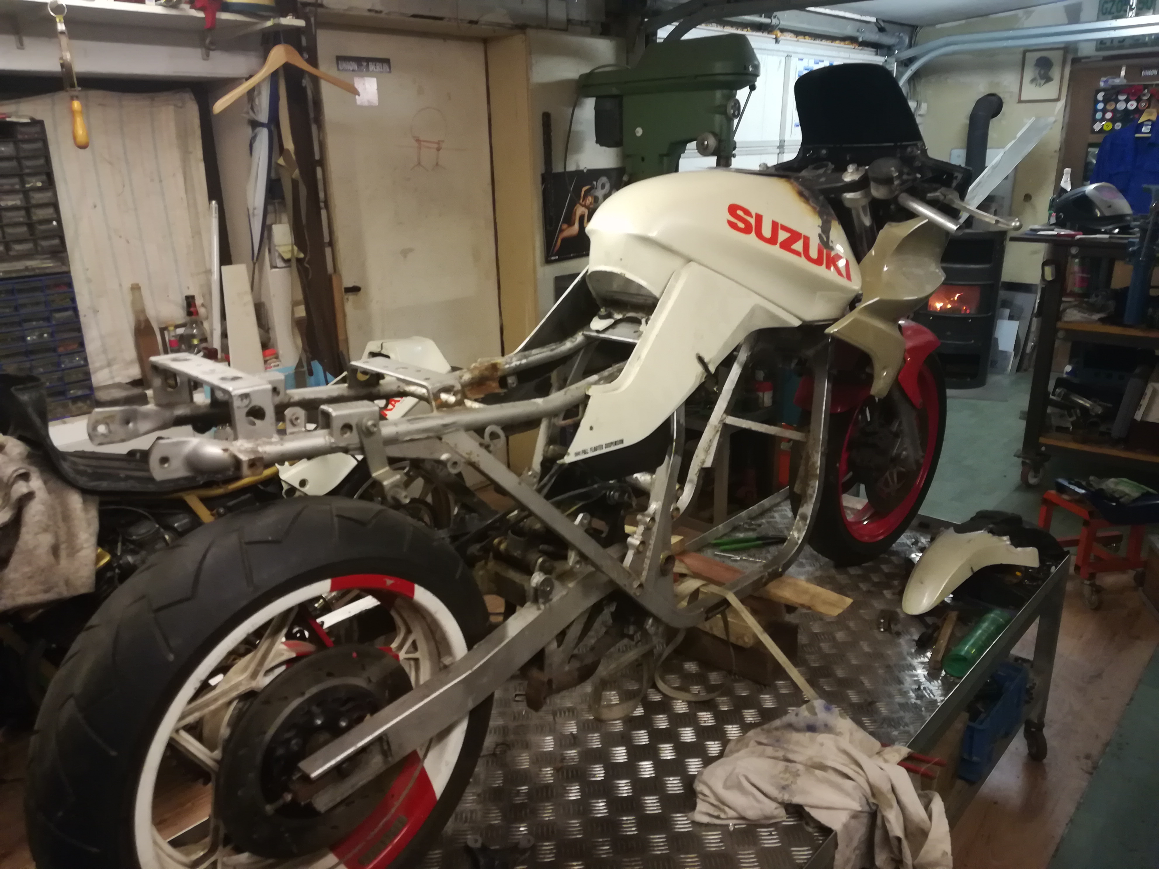 Heck ist schon mal gestrippt. Bin nur noch am Überlegen, ob ich es warm mache oder die Enden hinter Stossdämpferaufnahme mit der Flex einschneide, dann nach oben biege und wieder verschweiße. :!: vielleicht würfel ich heute mal :roll: