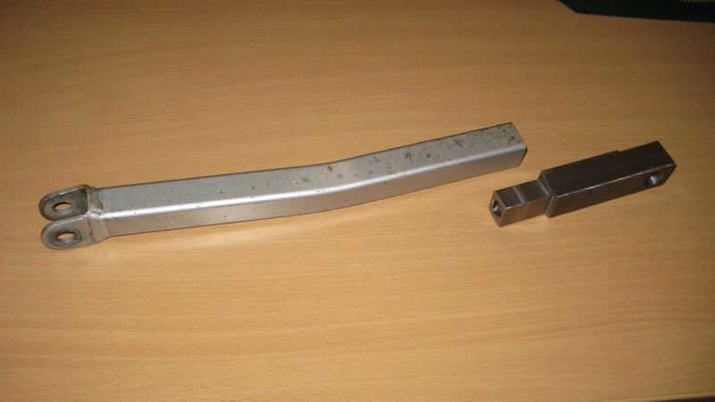 Die Bremssattelabstützung von der GSX750F musste ich nur etwas verlängern und an der Schwingenaufnahme verändern. Dazu habe ich mir an einem Stückchen 4-kant Material den passenden 4-kant Zapfen gefräst, damit dieser in das originale 4-kant Rohr passt. Das angesetzte Stückchen werde ich dann noch etwas mit Radien verschönern und anschließend mit der Strebe verschweissen ...