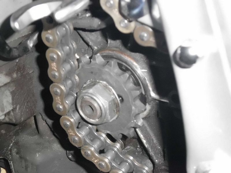 Dann heute nochmal die hintere Felge reingesteckt und in der Schwinge ausgerichtet. Anschließend an das Kettenblatt den Laser angelegt und nach vorne auf´s Ritzel gezielt und die Abstände des Laserpunktes gemessen und verglichen. Leider sieht man den Laserpunkt auf dem Foto nicht ... Ich habe einen Versatz der Kettenflucht von 1,5mm. Wenn man jetzt mal die ganzen japanischen Fertigungstoleranzen von Schwinge, Felge, Rahmen usw. mit berücksichtigt, dann denke ich mal, dass ich mit diesen 1,5mm sehr gut leben kann.