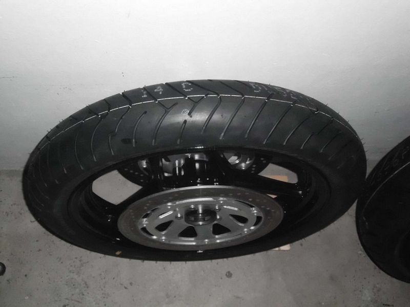 So , heute mal schnell die Felgen ins Mopped gesteckt. Alles passt, wackelt (dreht sich) und hat Luft