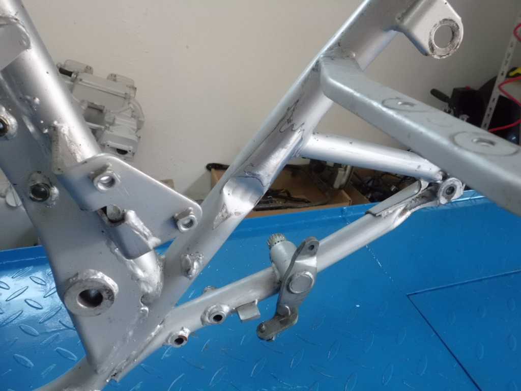 Die Seitenständerhalterung und die Stoßdämpferaufnahmen mussten repariert bzw. erneuert werden.