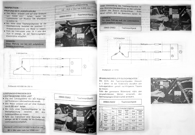 Also die Reparaturanleitung für die GSX 1100 ab 1980 gibt eine Regelspannung von 14,0 - 15,5 V bei 5000/min an.