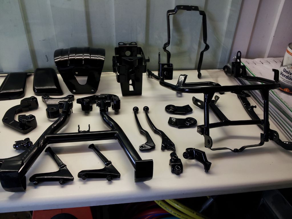 Die Schwarzteile sind gestrahlt und Pulverbeschichtet.