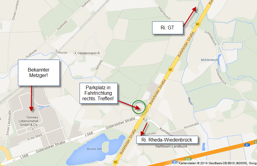 Daher planen wir eine Abfahrt so gegen 09:30 Uhr und wollen uns hier treffen ... An der B61, zwischen Gütersloh und Rheda-Wiedenbrück.