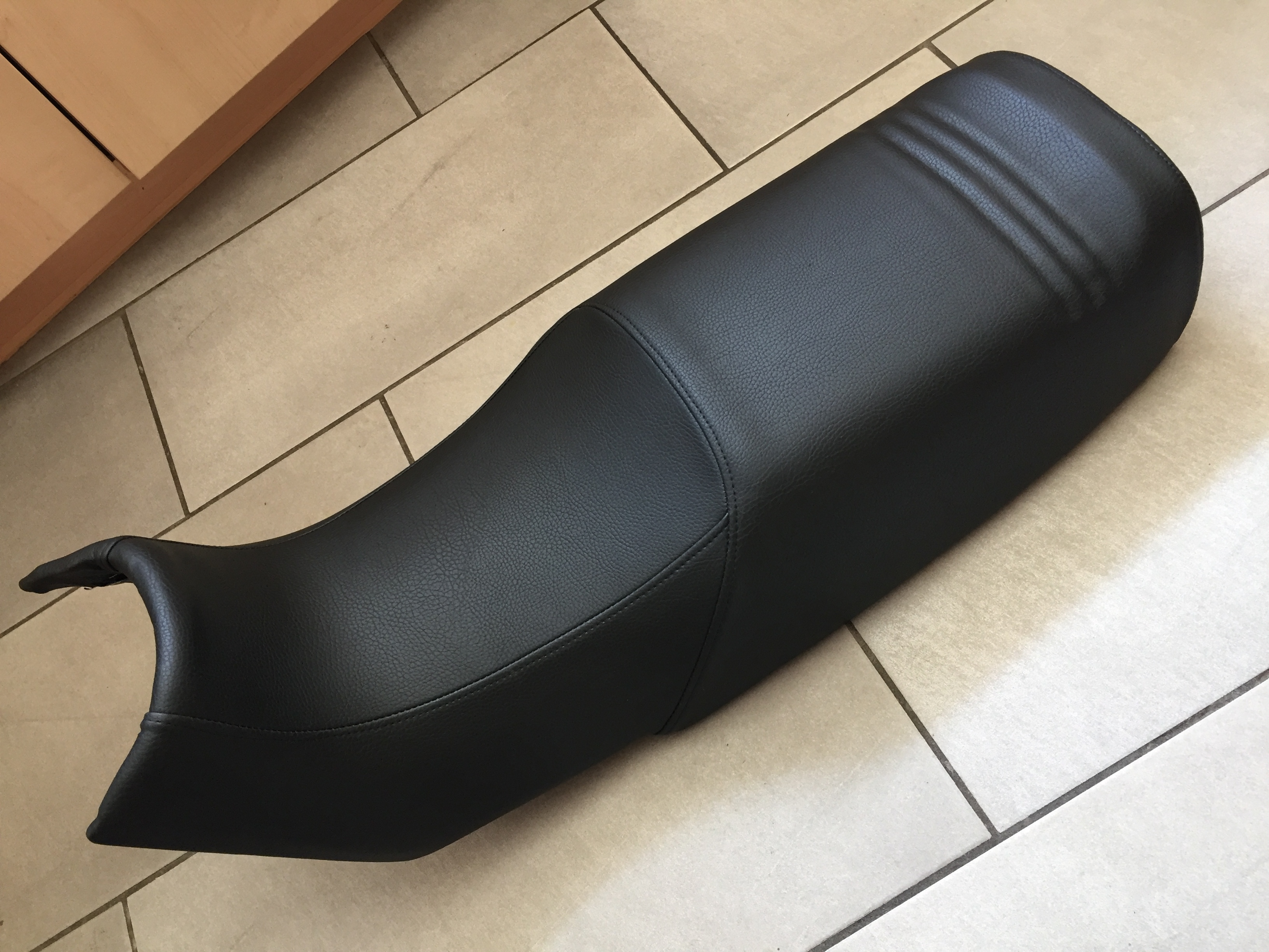 Meine alte original Sitzbank hatte ich noch im Keller eingelagert. Aber der Sitzbezug war doch nicht mehr so schön, wie ich dachte. Darum musste mal wieder der Sattler meines Vertrauens herhalten und die Bank neu beziehen.