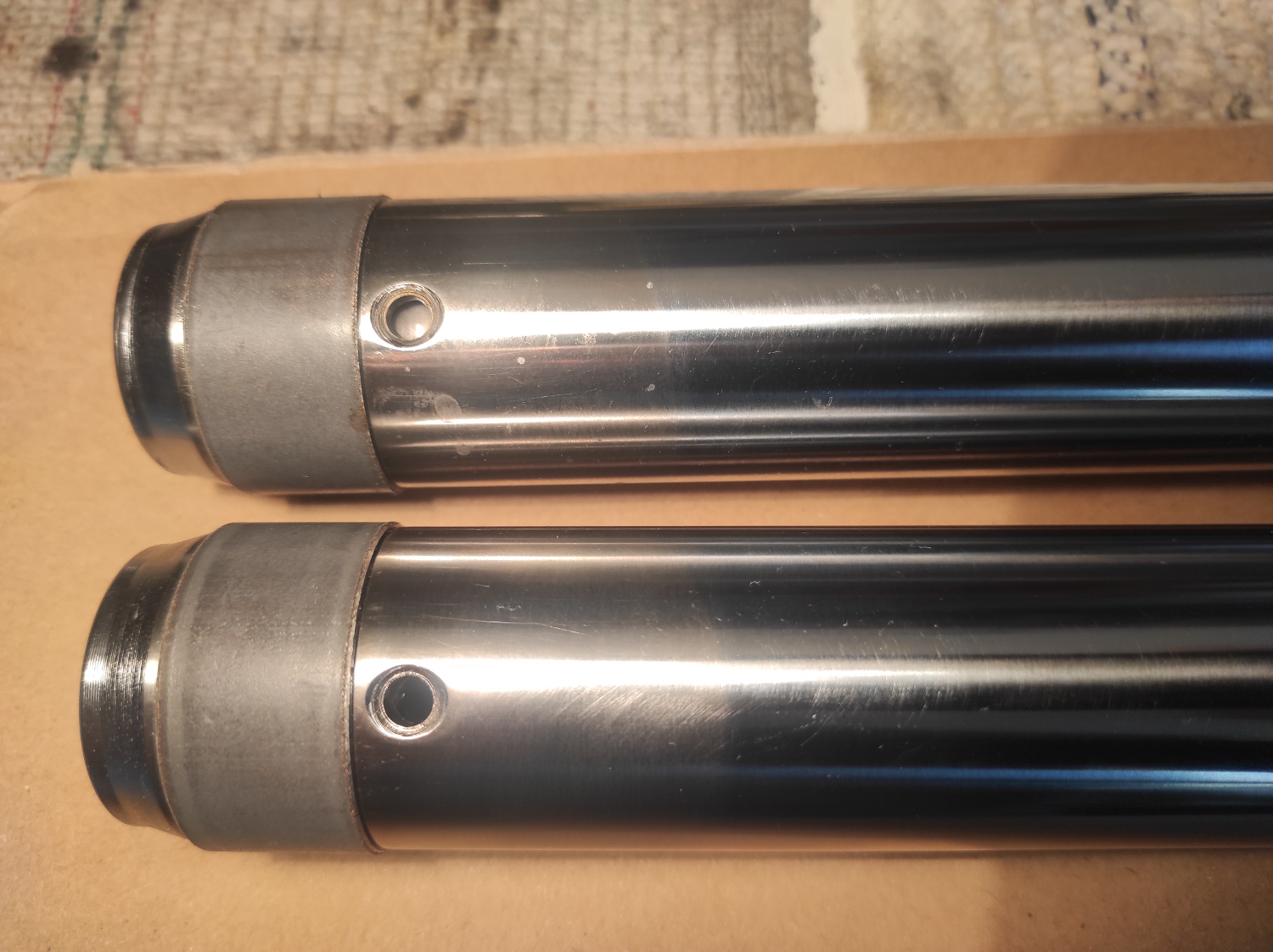 • Aktuell habe ich die Gabel komplett zerlegt, um sie zu reinigen und neue Simmerringe zu verbauen. Bei den Standrohren ist im unteren Bereich eine Bohrung. Innen ist eine mehr oder weniger bewegliche Hülse, die exakt auf derselben Höhe ebenfalls eine Bohrung hat. Eine der beiden Hülsen lässt sich sehr leicht drehen, bei der anderen muss ich etwas mehr Kraft aufwenden. Meine Frage: Lässt sich die Hülse ausbauen? Wie? Müssen beide Bohrungen beim Zusammenbauen exakt übereinander liegen? Wenn ja, wie stelle ich sicher, dass sich die Hülsen später nicht mehr verdrehen?