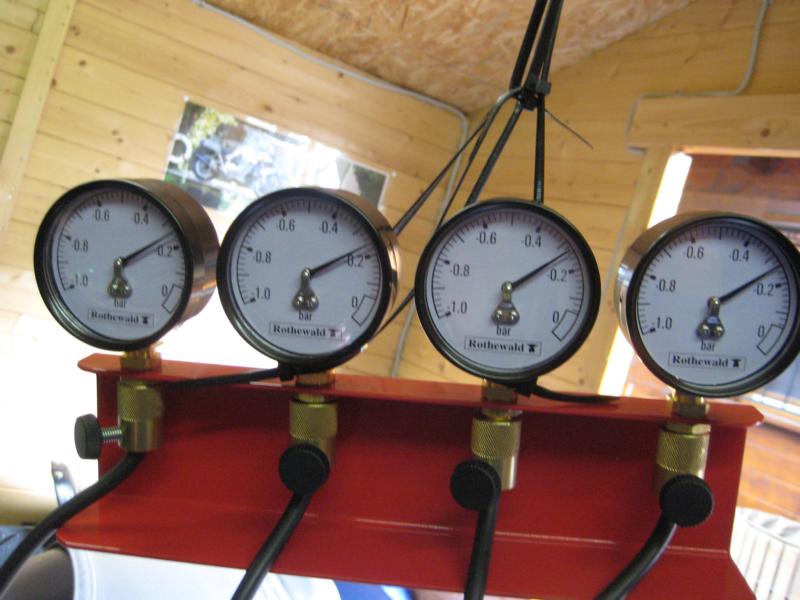 Und jetzt wäre es sehr schön, wenn mir mal jemand schreiben würde, welche Werte in bar der Tester im Leerlauf bei 1750 U/min (Wert aus dem Handbuch bei warmen Motor) anzeigen sollte. Das finde ich nirgendwo. Es gibt die Einstellschrauben A, B und C am Vergaser, was passiert wenn ich diese verstelle und vor allem in welcher Reihenfolge muss ich das machen?