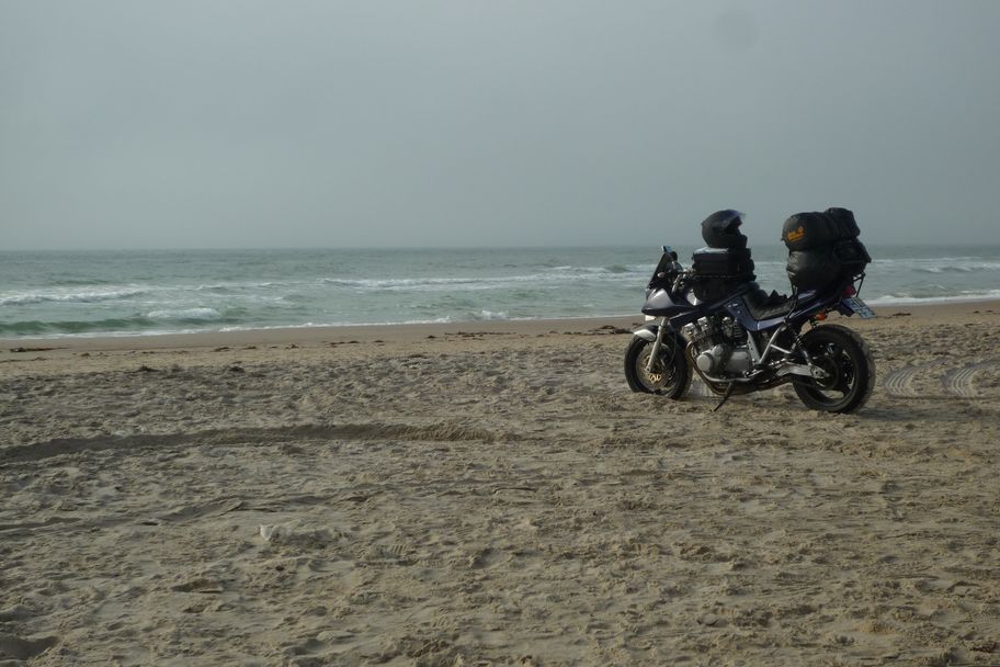 Erste Nacht nach 700 km in Tornby, kurz vor Hirtshals. Hier kann man noch schön mit dem Mopped an den Strand fahren.