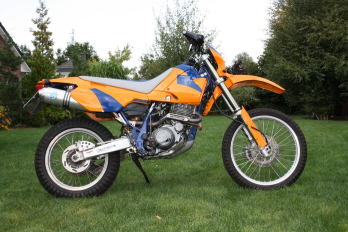 und dann noch diese 98er TT600 Belgarda (Yamaha), zugelassen. Läuft im Vergleich zu meiner alten XT 550 (auf 600 aufgebohrt) auf dem unteren Bild aber enttäuschend. Im direkten Vergleich wirklich eine Luftpumpe :lol: , ich wollte doch wieder einen Dampfhammer, die Emissionsionsgesetze verhindern ein überzeugendes Vorankommen dieses technisch ganz netten Moppeds.....