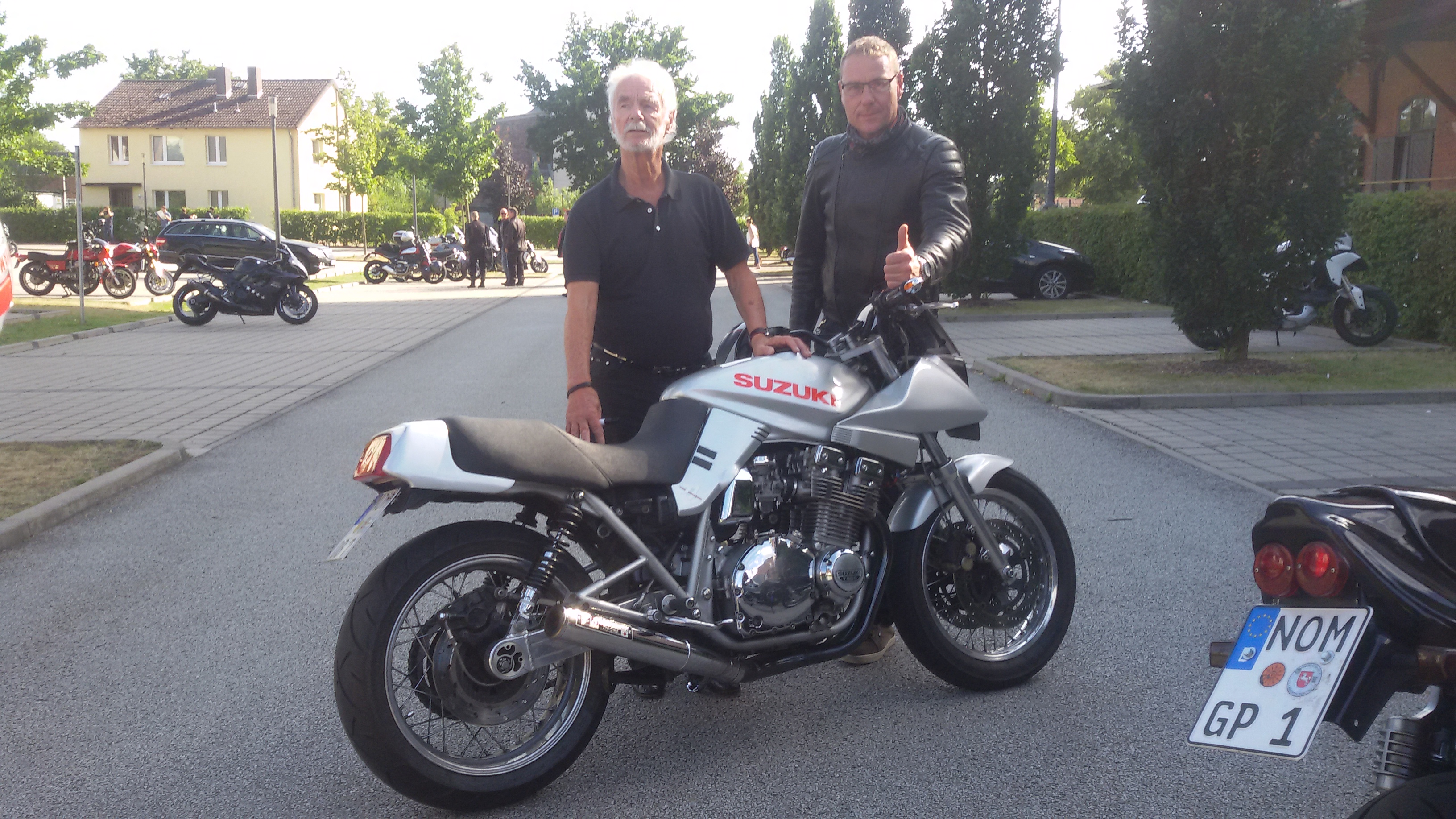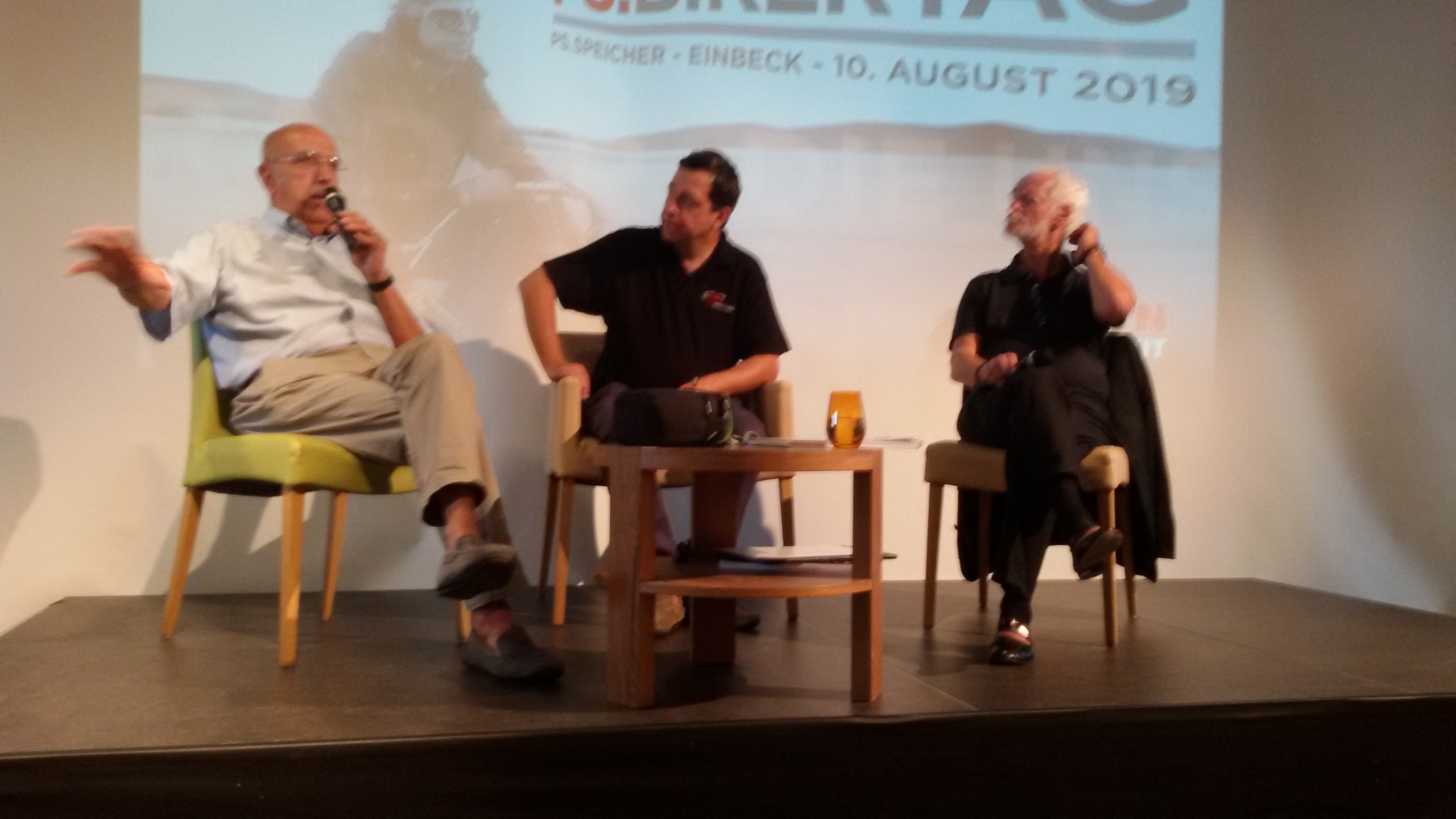 an diesem Wochenende fand der Bikerday am PS.Speicher in Einbeck statt, als Gastredner zur italienischen Motorradentwicklung waren Seniore Laverda (blaues Hemd) und Hans A. Muth (der Designer unserer Katana) geladen.