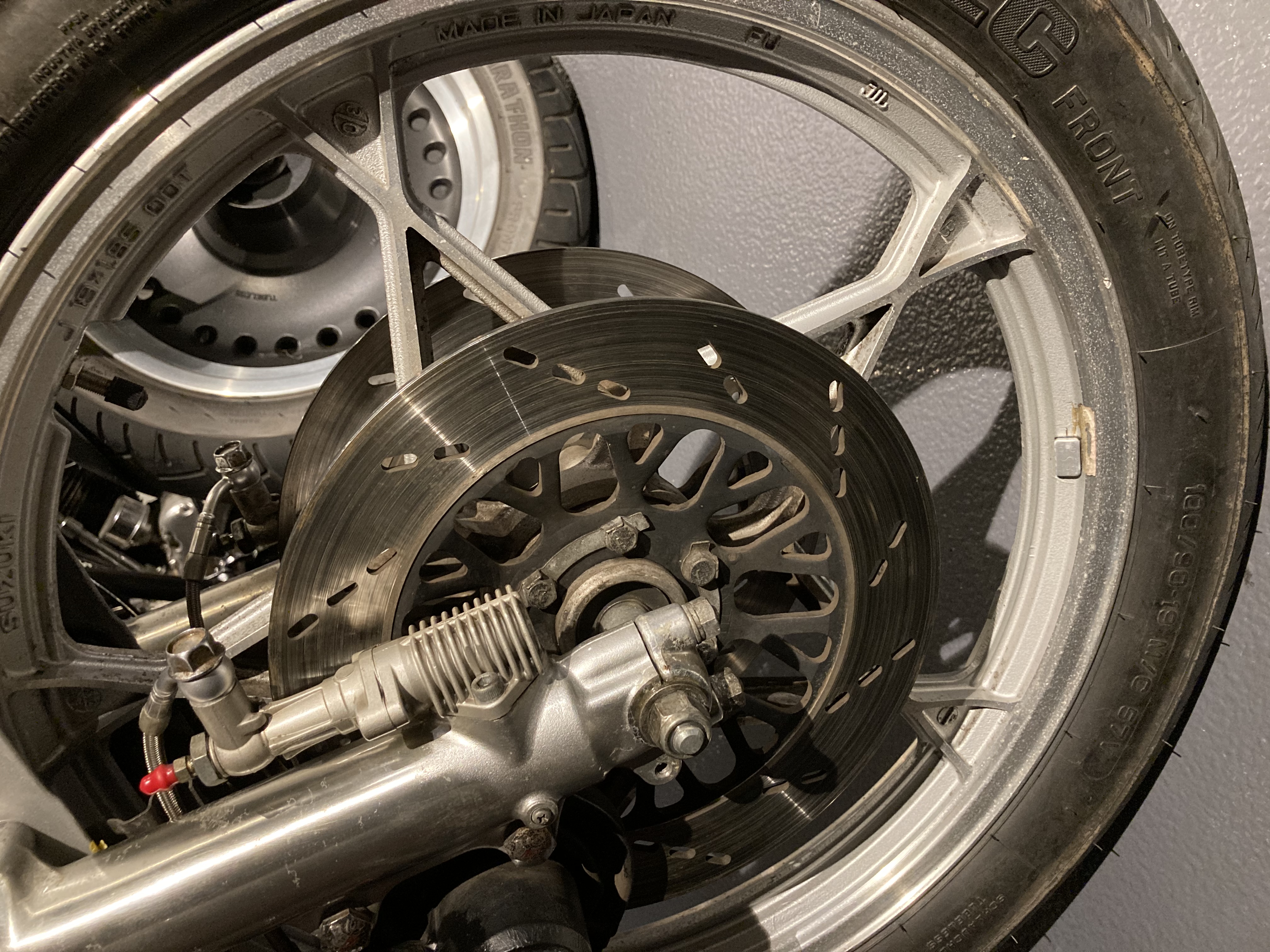 Anthrazit/Alu waren die Felgen der 750. Grösse vorne waren identisch. Oder du hast eine Felge aus der 1100 E.