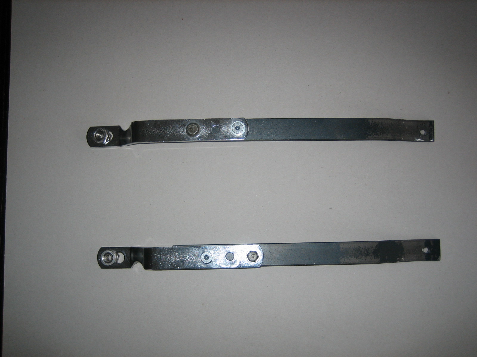 ich hatte mir vor langer Zeit einmal Halter für Gepäckträger in der Bucht gekauft. Für welchen Gepäckträger diese waren, ist mir unbekannt. Ich hatte die Idee, diese als Abstandhalter für Gepäcktaschen zu verwenden. Dieses scheiterte schon daran, dass die Gewinde an der Stoßdämpferausnahme defekt waren. Letztlich brauchen diese natürlich eine weitere Befestigung hinten. Letztes Jahr habe ich diese zu seitlichen Haltegriffen umgebaut, wie auf dem Foto zu sehen. Sind derzeit nicht am Motorrad verbaut.